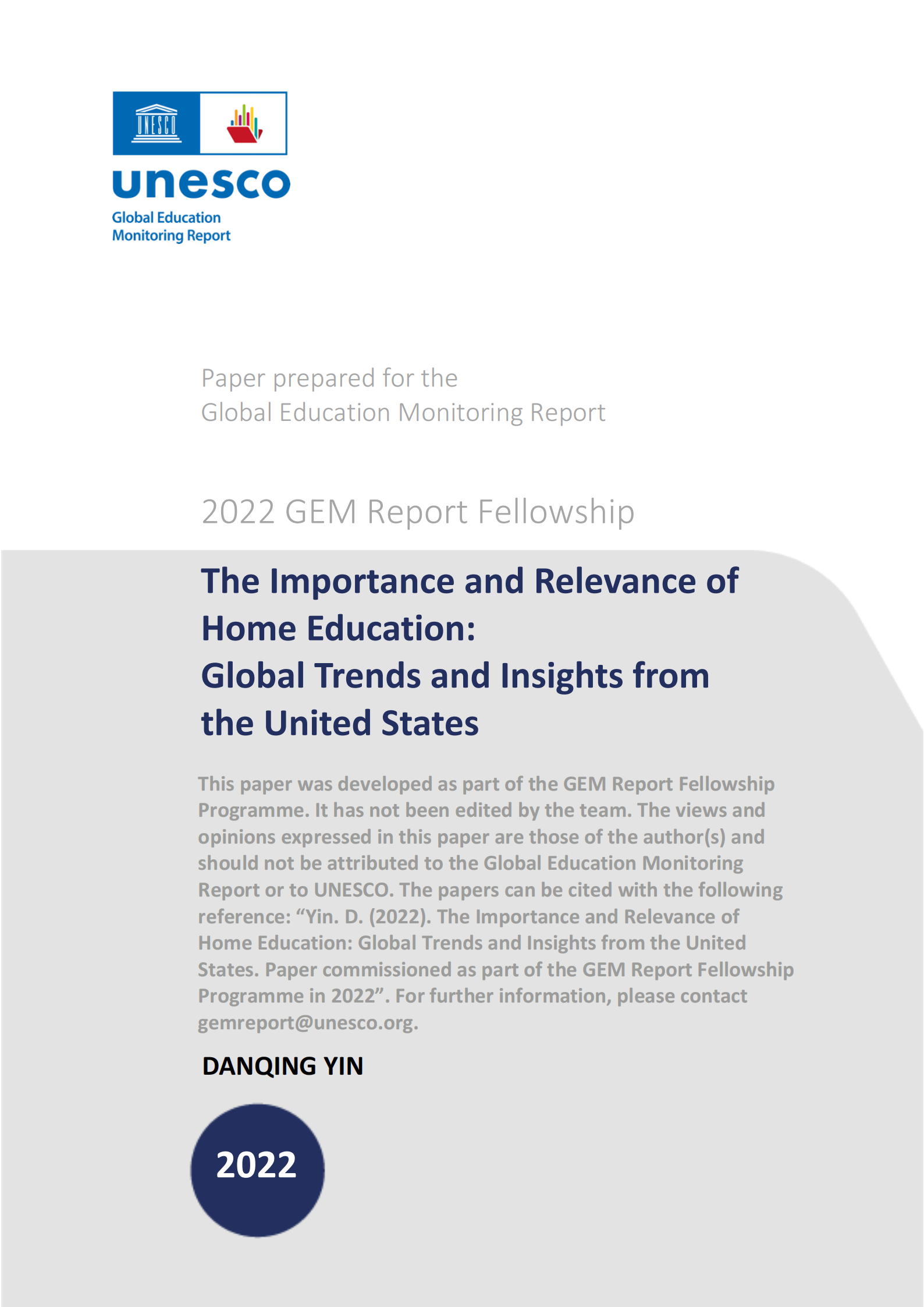 “The Importance and Relevance of Home Education: Global Trends and Insights from the United States” UNESCO Global Education Monitoring Report World Education Blog